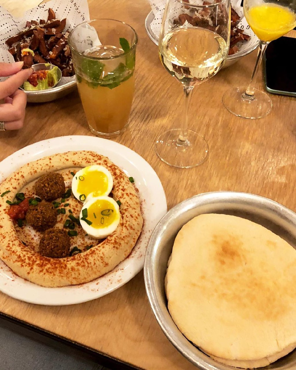 Место, которое уже давно обосновалось в Москве. Независимо от дня недели, столики Dizengoff на Покровском бульваре всегда забиты. Лучший хумус, фирменный салат Dizengoff, боул с креветками и различные намазки. И. куда же без Шакшуки.