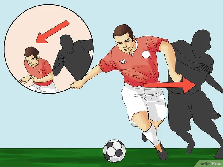 Шак 2 Прибегайте к финту плечом в ходе матча. Вероятно, это самое простое в исполнении движение, но при этом потрясающе действенное. Ведите мяч дриблингом примерно на 3–6 метров вперед. Приблизившись к защитнику соперника, склоните плечи влево, как будто бы собираетесь двигаться в этом направлении. Затем поверните траекторию мяча на 45 градусов вправо шведкой правой ноги.[19]