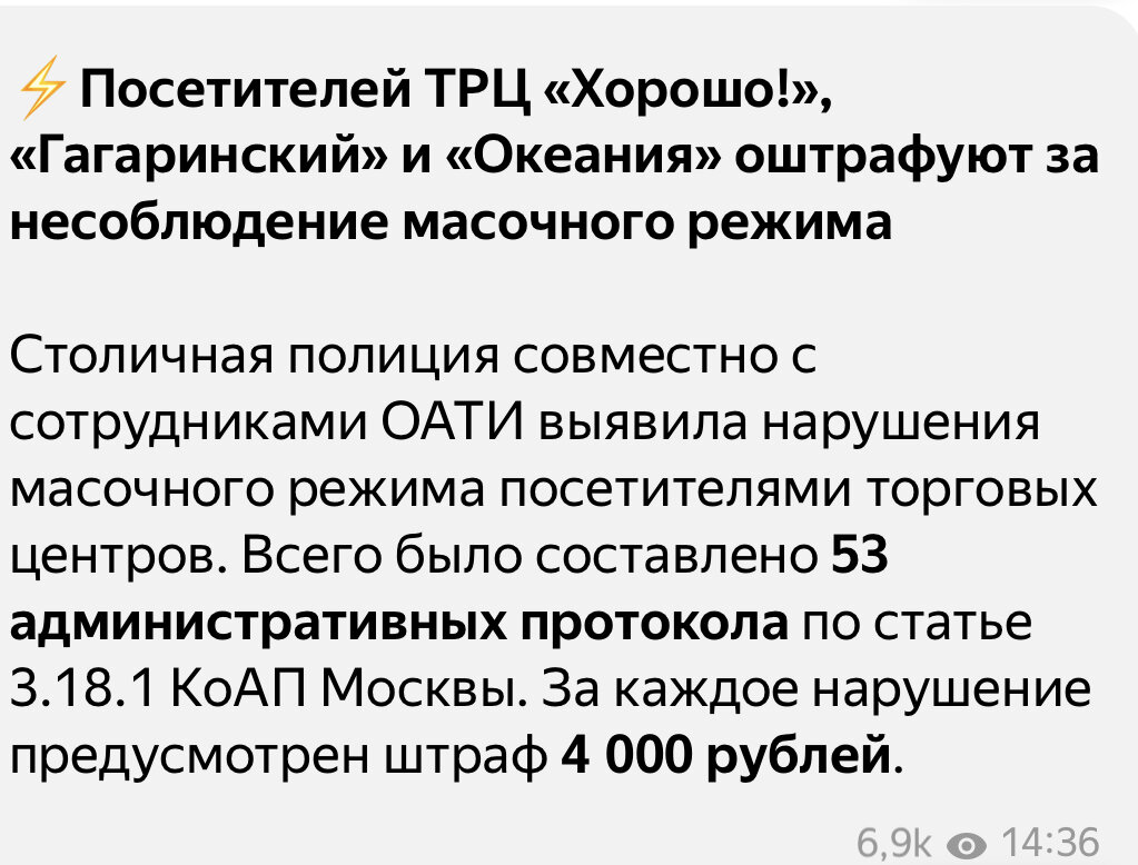 Вход в ТЦ без маски бесплатный - выход 4.000₽