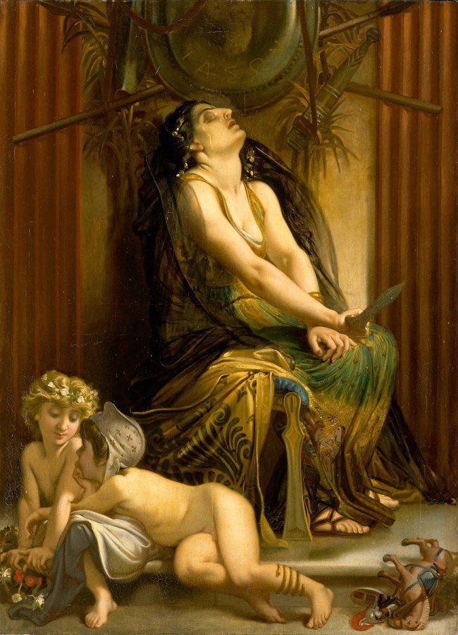 Нет спасения её детям от разъяренной толпы - родственников невесты, и героиня, не думая более о себе, закалывает своих детей.
