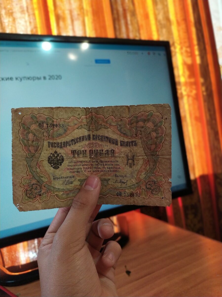 Одна из таких купюр является ТРИ РУБЛЯ 1905.