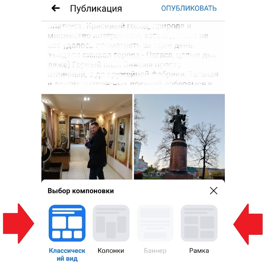 А тем временем Facebook придумал дополнительный способ привлечения внимания к постам контентом. Теперь при создании поста можно выбрать способ отображения изображений/фото, если их к посту прикрепить несколько штук.