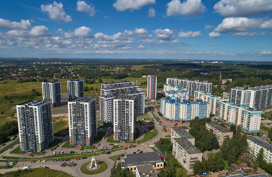 Новый жилой микрорайон, который возведен в Колтушах, — это аккуратный островок современной застройки, вписанный в холмистый ландшафт. Из окон здешних высоток можно увидеть панорамы Петербурга на горизонте и живописные сельские пейзажи. А в хорошую погоду виден даже купол Исаакиевского собора.