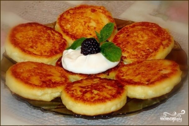 1. Положите весь творог в кастрюльку и разомните его вилкой так, чтобы в нем не осталось крупных комков. Разбейте в него яйца, всыпьте сахар и тщательно все перемешайте. Лучше не использовать слишком сухой или слишком влажный творог, иначе сырники будут разваливаться в процессе приготовления.