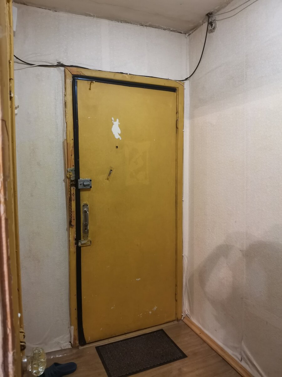 Дом и дверь в квартиру не вызвали подозрений, вроде все прилично, но открыв первую дверь ты натыкаешься на вторую и впадаешь в небольшой шок. Ободранная советская деревянная дверь.