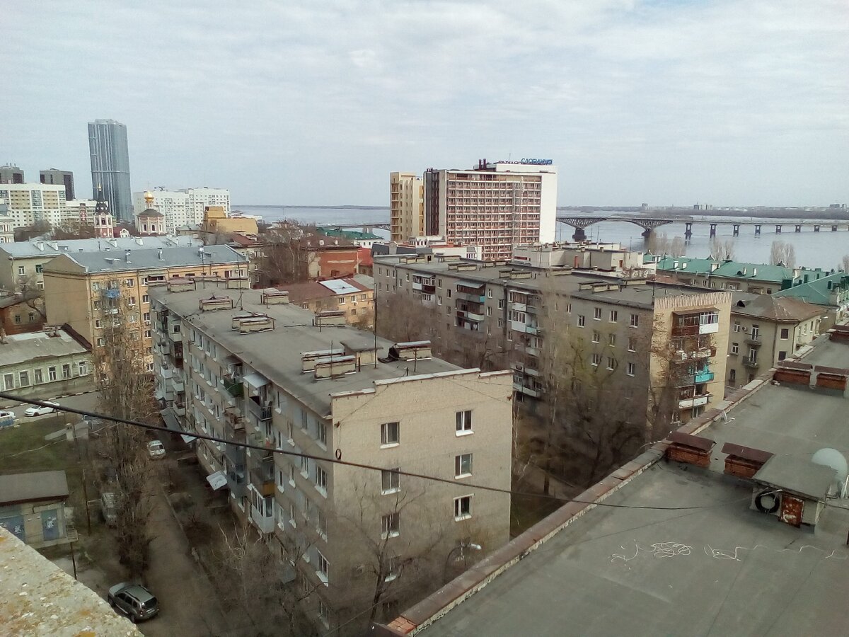 Мне посчастливилось побывать на крышах домов в самом центре города Саратов. Хорошо виден мост из Саратова через Волгу в Энгельс
