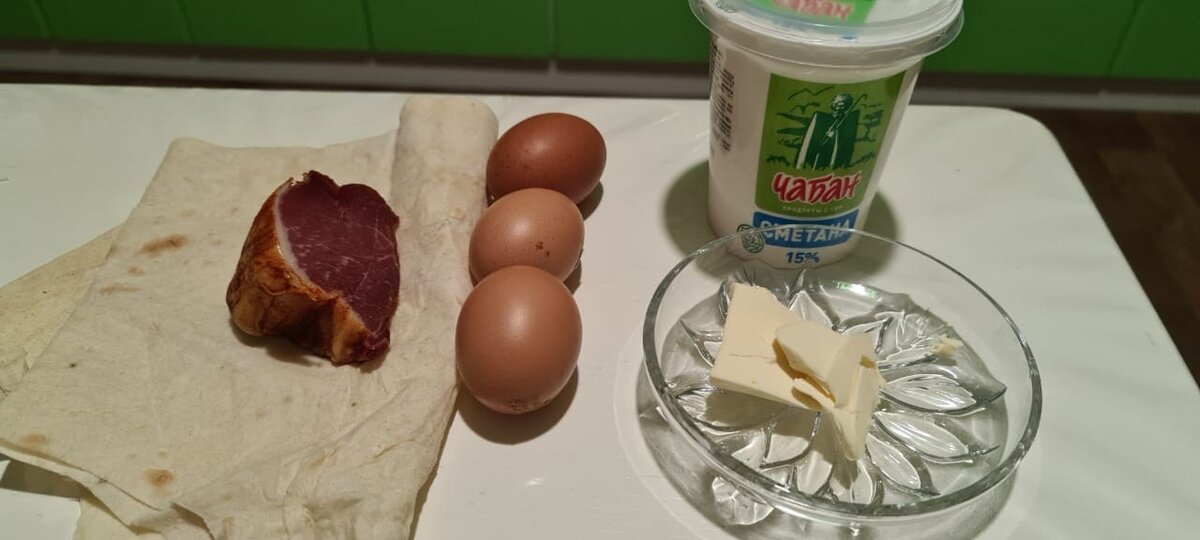 Сегодня утром решила использовать остатки. В холодильнике еще был немного залежавшийся кусочек копченой свинины. Решила пустить все в дело и сделала необычный