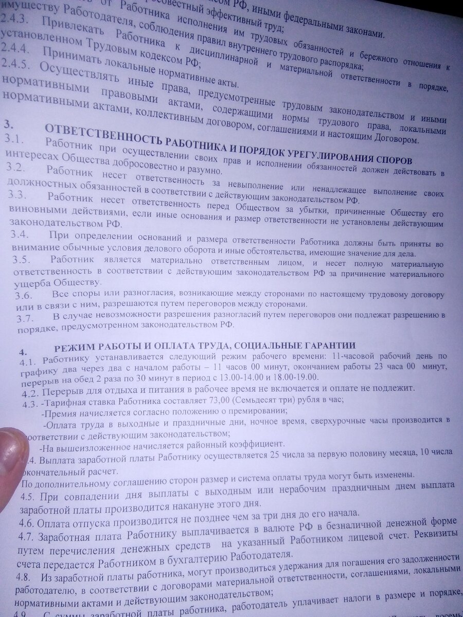 Интересным моментом в договоре была зарплата. 73 рубля в час. Хотя по факту я получала 105 рублей в час. Директор сказала, что это только в договоре, по факту зарплата будет 105 в час.