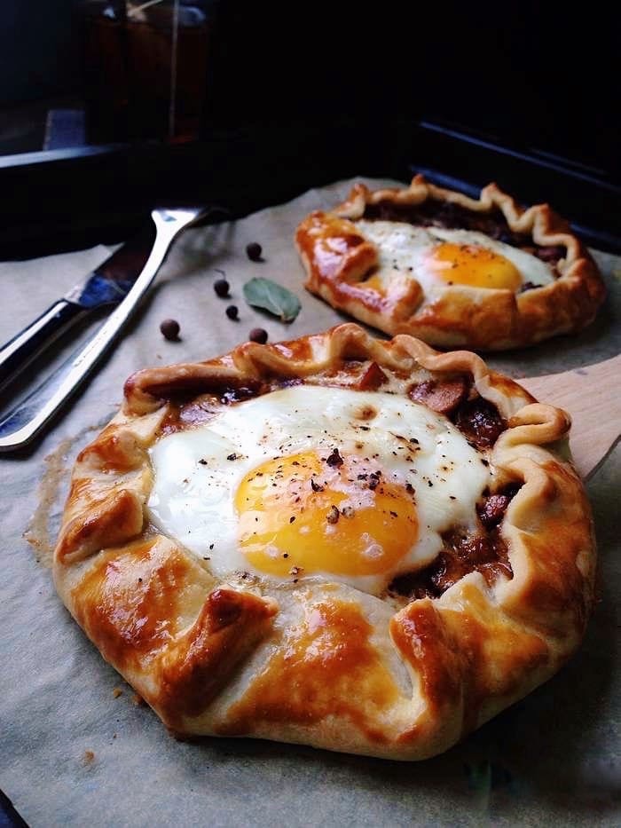 - Затем достать галеты из духовки, в каждую вбить по яйцу, посолить и поперчить по вкусу. И опять отправить в духовку на 12-15 минут!