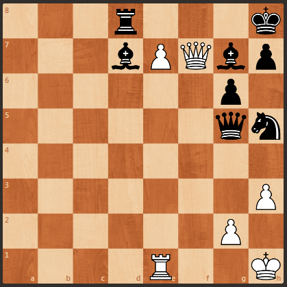 1. Белые ставят ферзе на поле е8, и далее после разменов на е8 следует песложный мат. Более сложную задачу решайте тут>>>>
