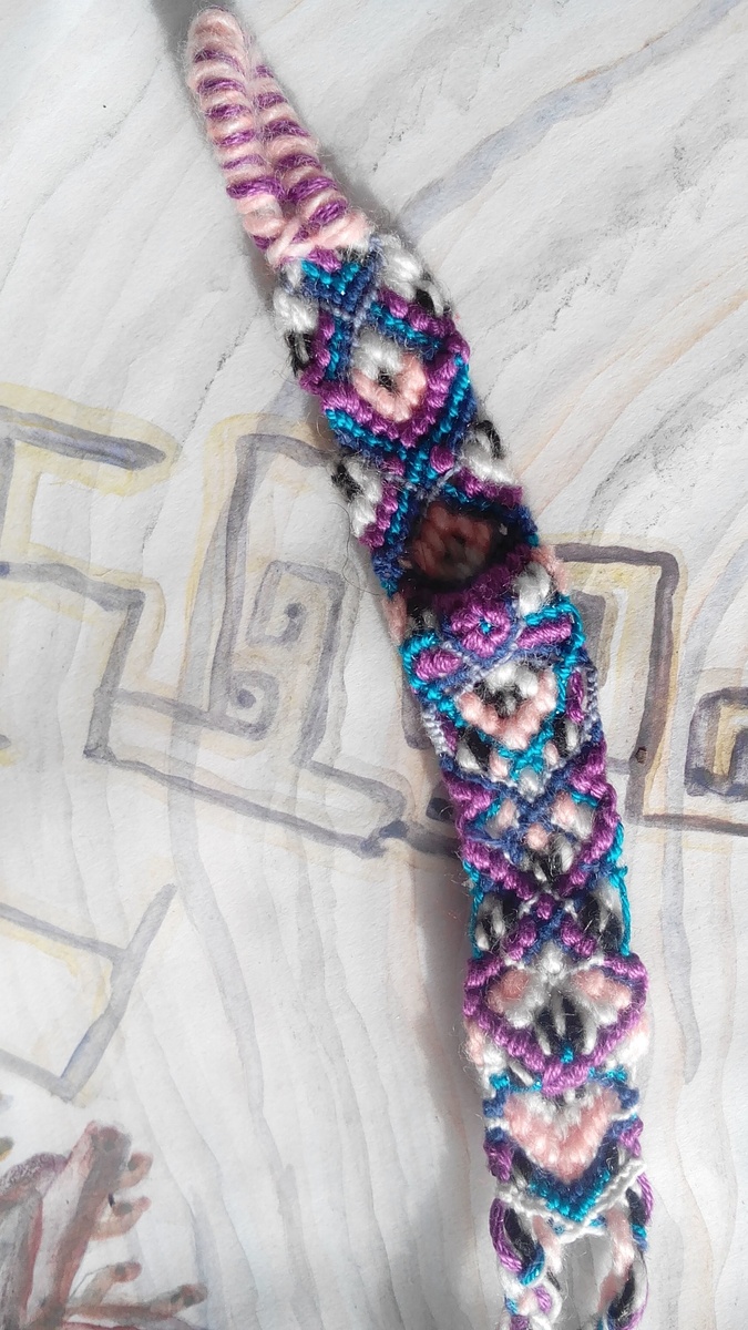 Кулон из ниток, бисера и обожжёной пластиковой бутылки)
