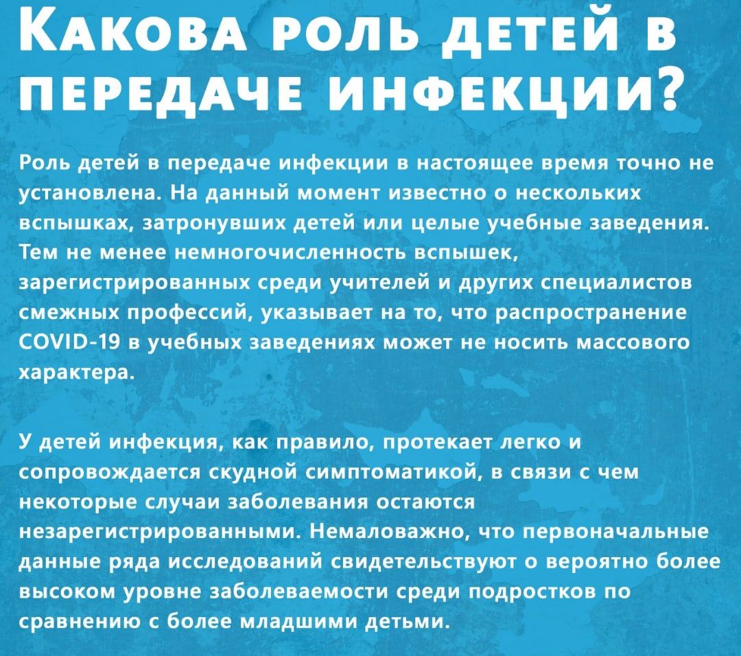 Согласно модельным данным ряда исследований, открытие школ может в небольшой степени влиять на передачу инфекции среди населения в целом, однако механизм