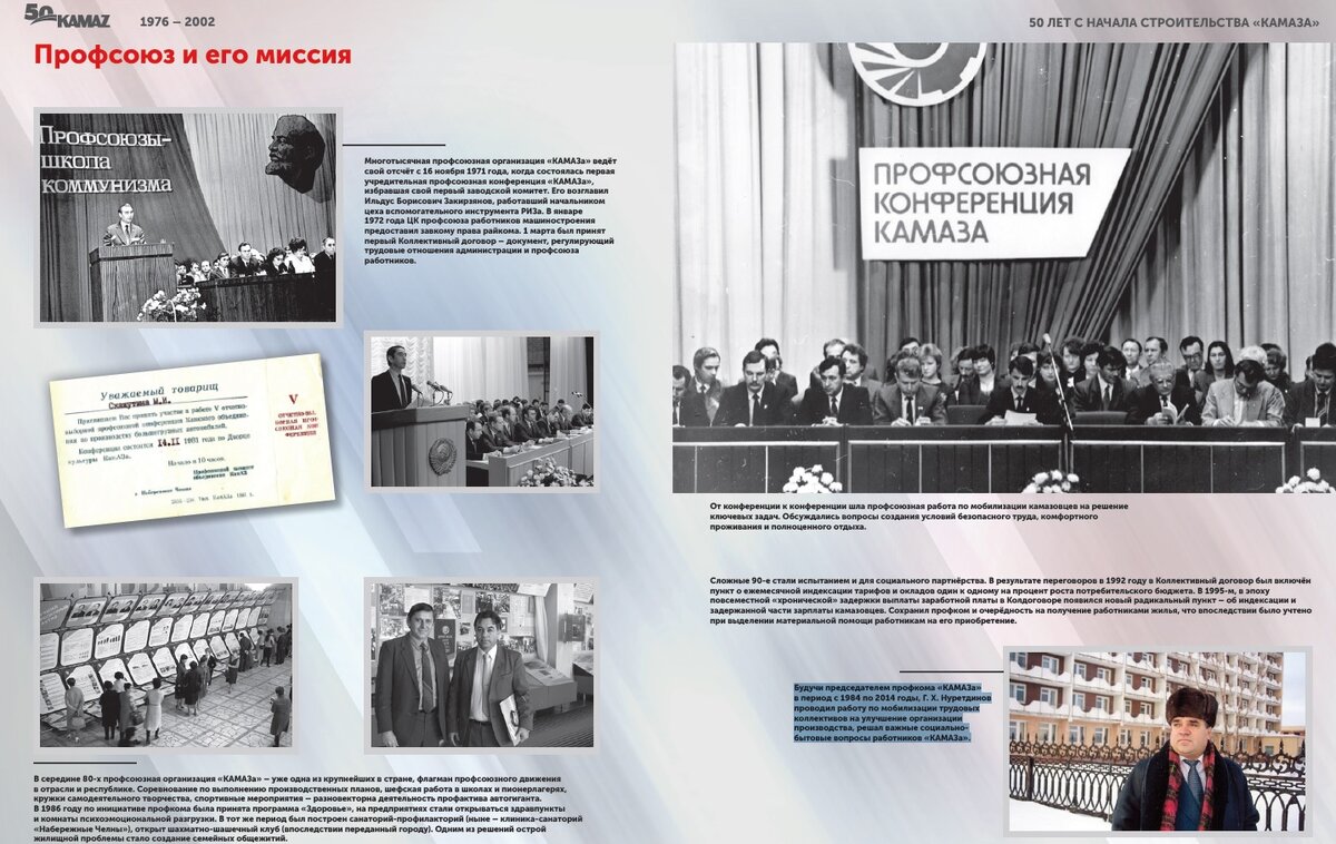 Многотысячная профсоюзная организация «КАМАЗа» ведёт свой отсчёт с 16 ноября 1971 года, когда состоялась первая учредительная профсоюзная конференция «КАМАЗа», избравшая свой первый заводской комитет.