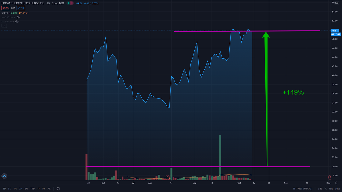 1. IPO Forma Therapeutics (FMTX) - Зафиксировал прибыль по IPO Forma +149% . Аллокация составила 7.6% т.е. мне удалось купить акций на $130.