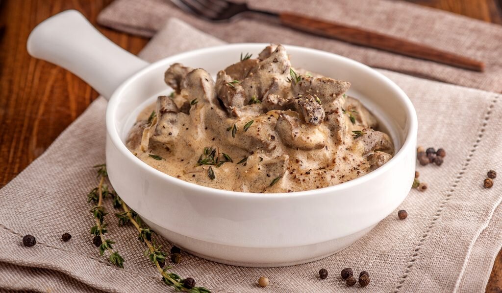Сегодня приготовим классический Бефстроганов. Давайте поговорим о истории блюда. Считается, что его придумал Строганов, но на самом деле его придумал его повар, когда Строганов был уже старенький, ему нужно было есть что-нибудь мягкое, а Бефстроганов это маленькие, мягкие кусочки мяса в соусе, но в России тогда не было такого слова "соус", а повар учился во Франции, но точно этого я сказать не