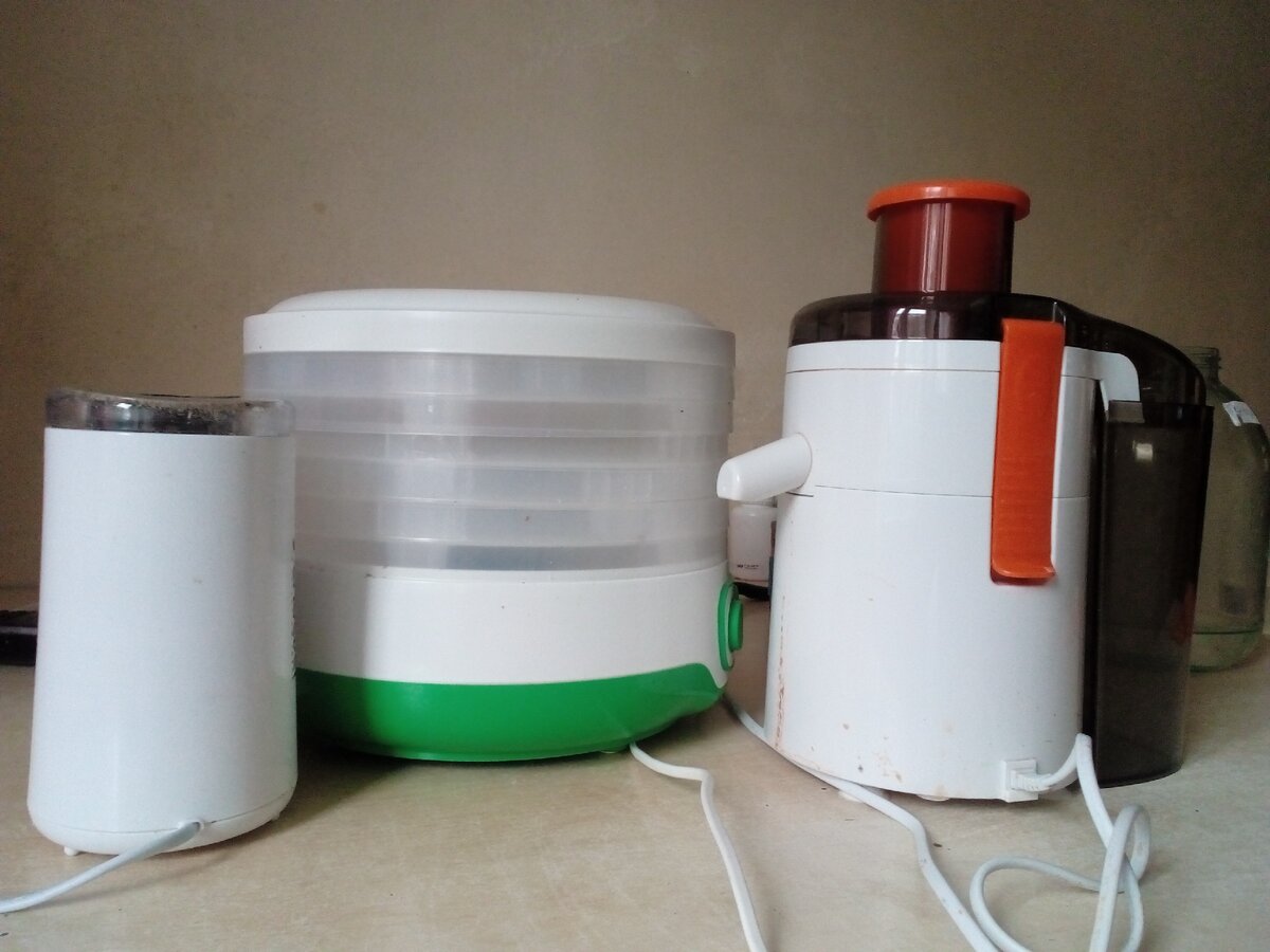 Кофемолка, сушилка для овощей и фруктов, соковыжималка и ещё блендер, которого у меня пока нет - основное оборудование для сыроеда.