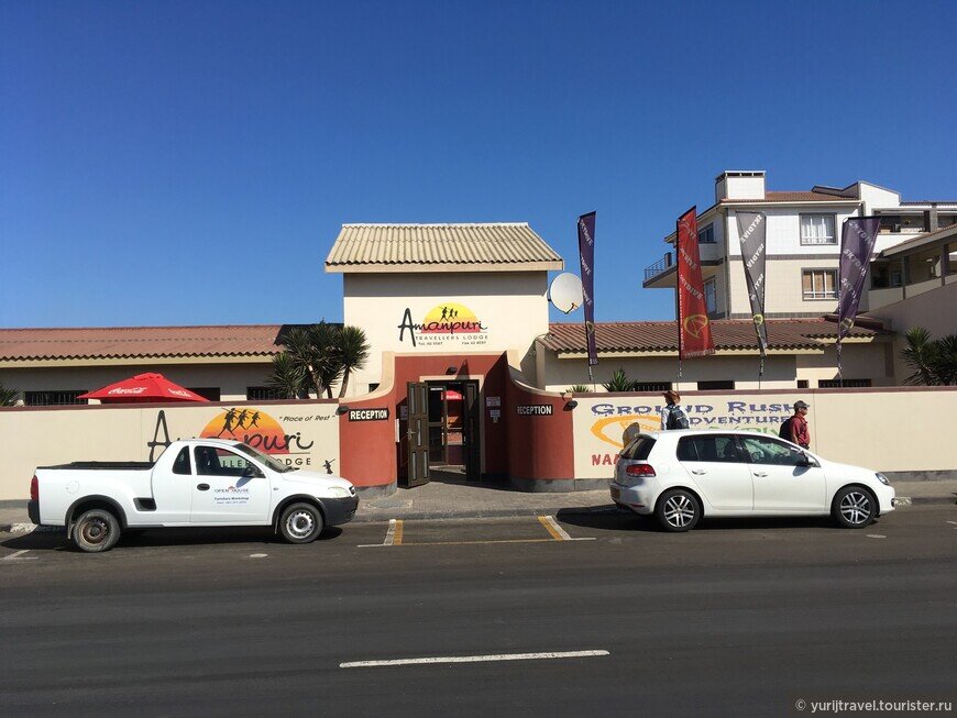 Ни в какой другой ресторан, ничего не зная, в потемках идти не хотелось, поэтому, устроившись, кое-что взяли в нашей кафешке и собрались в одной из комнат отметить прибытие в Свакопмунд. А уже завтра днем будем знакомиться с этим, единственным на побережье Атлантики, приличным городом-курортом эдаким намибийским Сочи или НиццейВходная группа отеля Amanpuri Traveler Lodge
