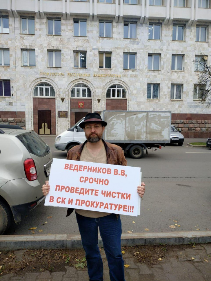 Юрист Александр Войцех вышел на одиночный пикет к зданию прокуратуры Башкирии