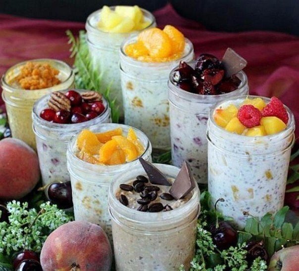 В банку добавляем овсянку, молоко, #йогурт, какао-порошок и #мёд. Закрываем крышкой и хорошо встряхиваем, пока все ингредиенты не смешаются. Открываем, добавляем кусочки нарезанных спелых бананов и аккуратно размешиваем. Закрываем крышкой банку и ставим в холодильник на ночь.