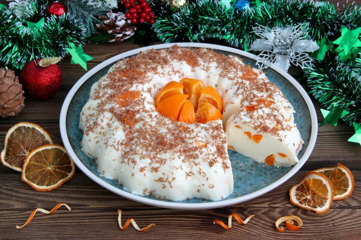 Мандарины вымыть и очистить, разобрать на дольки. Десерт получится более нежным, если дольки очистить от всех плёночек. Бывает попадают мандарины с совсем тонкой плёнкой, в таких её можно оставить, если более грубая и толстая, всё же лучше удалить. Дольки можно оставить целыми или нарезать, так они равномернее распределятся в десерте. Это самая трудоёмкая работа в рецепте, которую можно сделать заранее, накрыть очищенные мандарины и убрать в холодильник.