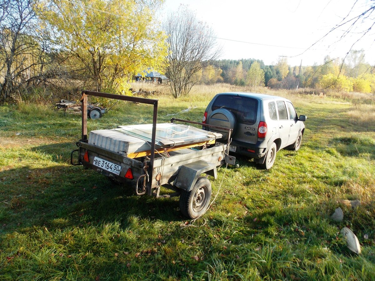 А как только стали ехать по заплатанной кое-как, последней, асфальтовой дороге, так верёвка оборвалась, и стёкла чуть не сбежали с прицепа. Володя во время это заметил, и, остановившись, восстановил верёвку, перевязав её по-новому.