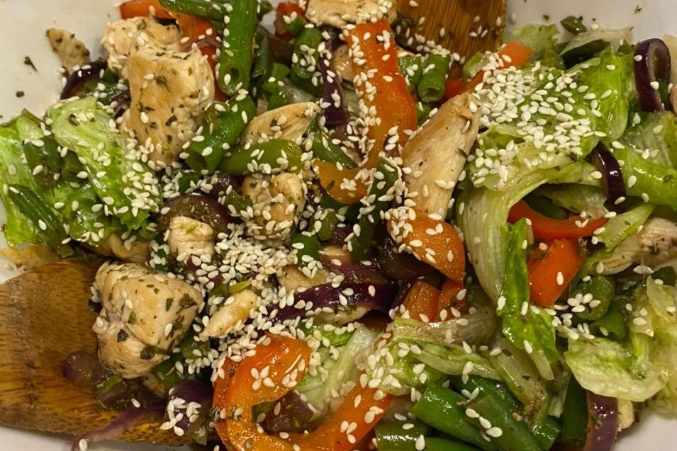 Я вот, нафантазировал, теплый салат из курочки с овощами.