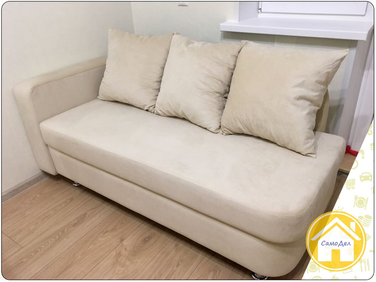 Нас это вполне устроило. Мы поменяли немного форму (убрали выступ). Изменили цвет. Увеличили подушки. Размер нам подошел, решили оставить как есть. Цена такого дивана под заказ 10 000р. с доставкой.