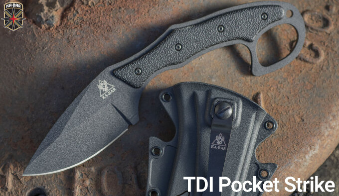 KA-BAR Knives Inc недавно добавили в свой каталог несколько новинок, в том числе и нож Pocket Strike, развивающий дальше концепцию оригинальной модели TDI разработанной совместно с Джоном Бэннэром (John Benner) - ветераном-лейтенантом полиции, инструктором и основателем одноимённого учебного центра тактической самообороны Tactical Defense Institute.