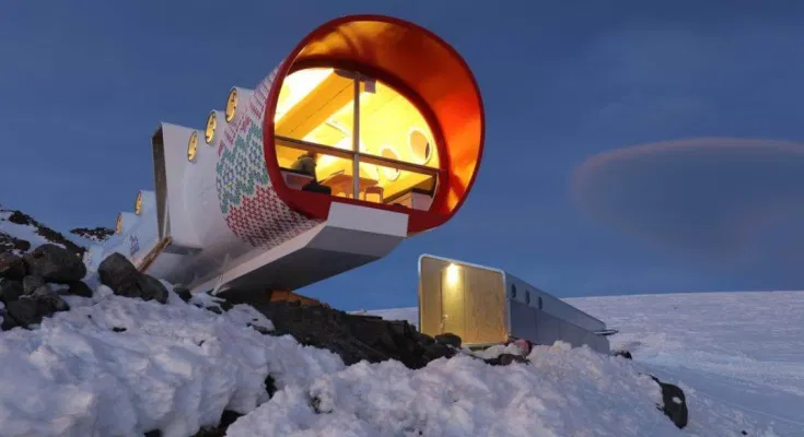 Отель, расположенный на высоте 3912 метров на южном склоне Эльбруса, выглядит как космический корабль, который приземлился посреди гор с важной миссией — помочь альпинистам отдохнуть и восстановить силы. В приюте LeapRus можно любоваться могущественной красотой самой высокой горы Европы из окна своей тёплой и уютной спальни.