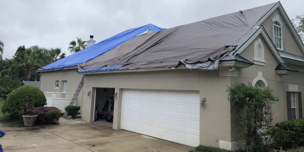 На 6-й неделе дела пошли еще хуже, работа была остановлена, и они просто решили накрыть всю крышу брезентом.