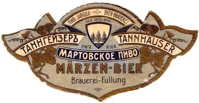 А уже в 1870 напротив завода Ильгецем Э.А. Пульс основал пивоварню «Тангейзер». Со дня премьеры прошла как раз четверть столетия, так что название было юбилейным. А если добавить, что Вагнер какое-то время на заре своей музыкальной карьеры подрабатывал в Риге, то название было вполне оправданно. Непонятно только, зачем открывать новый завод настолько уж рядом с уже имевшимся производством. Причём настолько рядом, что что получилось через дорогу напротив. Ведь не думал же тогда владелец завода о предстоящем объединении?