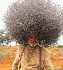 Что это такое? Скажите мне, что за кусты на голове у этого мужчины. Он так маскируется, прячется от жары, а может это у него такой терновый венок. Или парик своеобразный