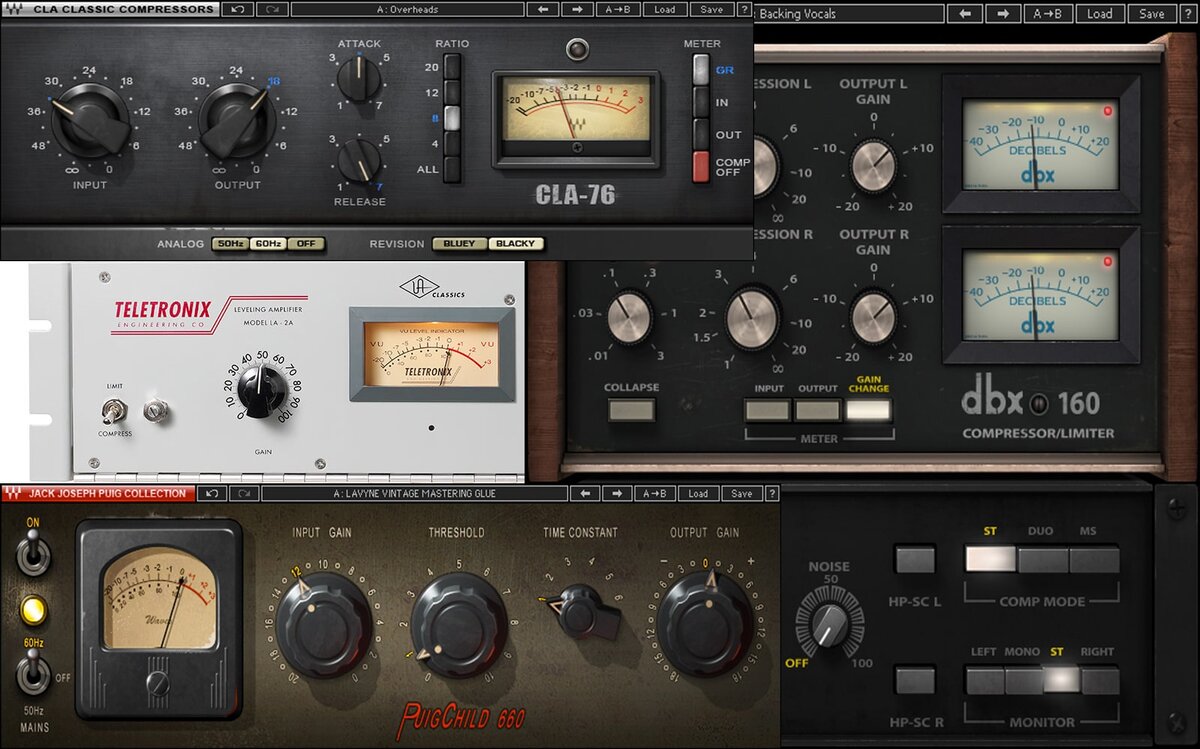 Тем более, что и компрессоры бывают разные сами по себе. Пока что для нас важный только два вида: красящий и нет. Красящий компрессор (вроде waves puigchild или cla-2a) добавляет красивых искажений в звук, что делает их очень музыкальными при использовании на вокале или финальном миксе (компрессор на всю песню используется не только, чтобы можно было поднять общую громкость песни — он "склеивает" голос с музыкой).
