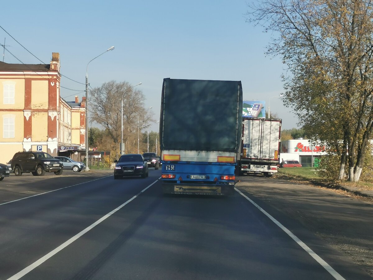 Для решения этого вопроса мы пристроились в хвост «смирной» фуре, которая идёт ровно, не играет «в шашки» на дороге и не пытается сбросить нас с хвоста.