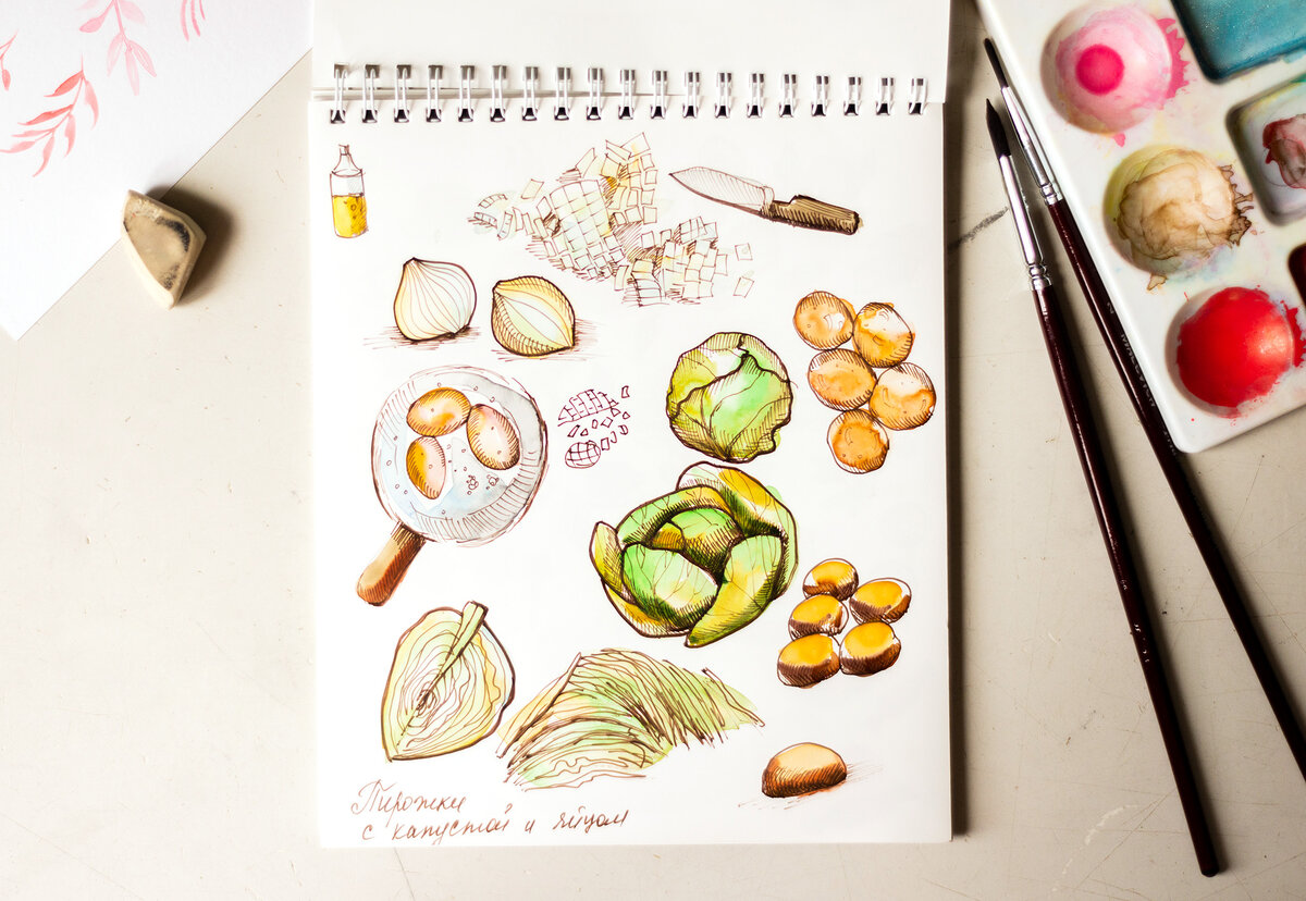 У каждого из моих рисунков есть своя история появления на свет. Сегодня я расскажу о рисунке пирожков с капустой.