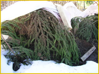 А вот что не нужно делать, так это оборачивать хвойные растения чрезмерно толстым нетканым материалом, либо полиэтиленовой пленкой. Эти материалы прекрасно удерживают тепло, однако это же приводит в выпреванию растений в периоды оттепелей, когда температура внутри чрезмерно повышается.