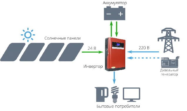 Что такое гибридный инвертор, принцип действия