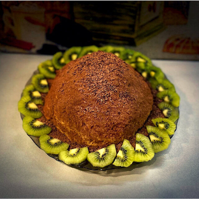 Украшаем на ваш вкус, я выбрала какао, шоколад и киви.
