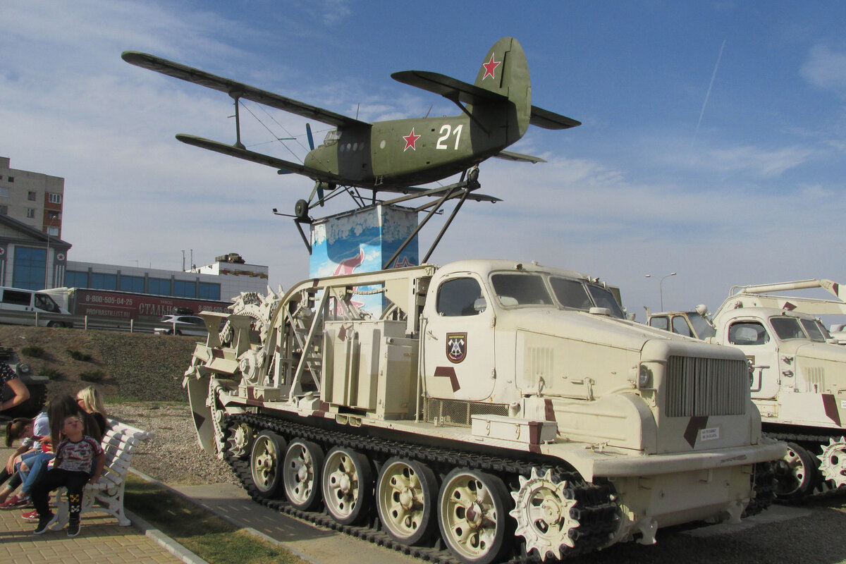 Когда мы ехали на машине с отдыха с югов, остановились в Каменск-Шахтинском возле музея военной техники под открытым небом. Площадку, заставленную военной техникой, трудно не заметить. Здесь видны и самолеты Су и МиГ, и военные вертолеты. Ну, и БТР, танков, понтонной техники, кучу всяких автомобилей тут было тоже видано не видано.