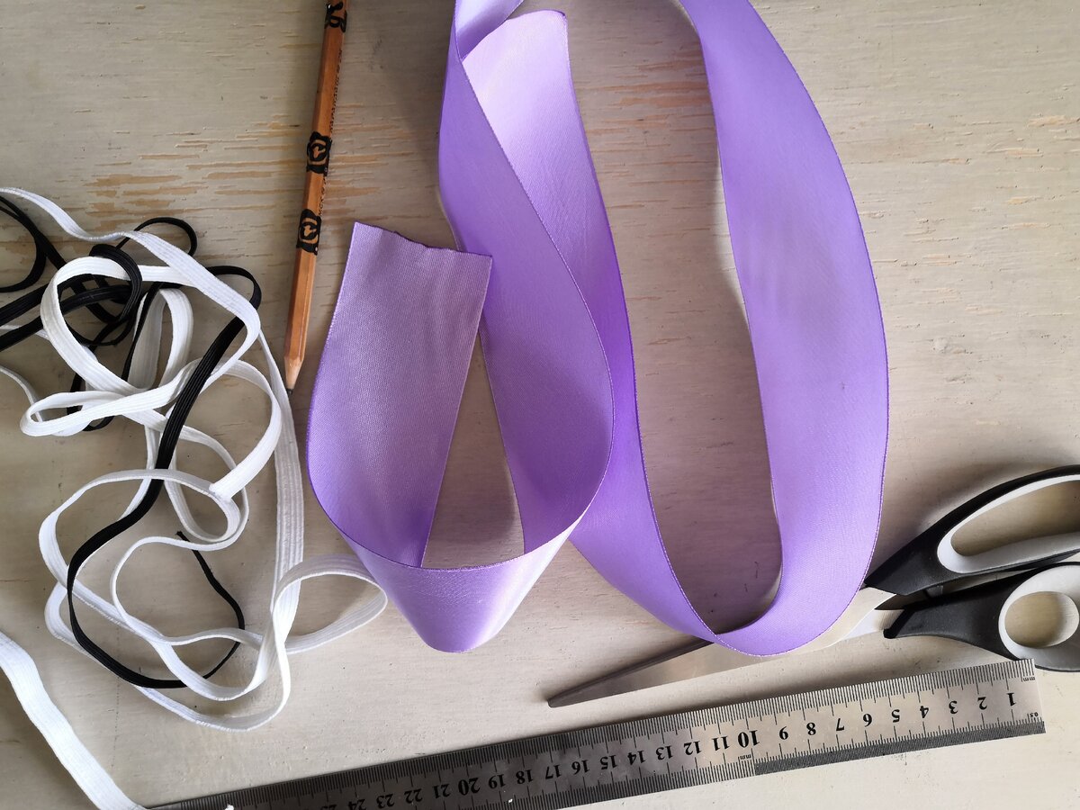 Вам понадобится: атласная лента - 1м., резинка - 18-20см., швейная машинка (но можно прошить и вручную), ножницы, линейка, карандаш, булавка, иглока и нитки.