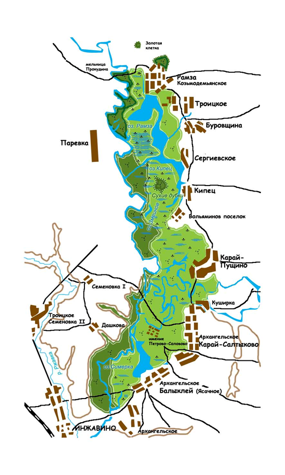 Схема района проведения операции по очистке Паревского леса 1-10 августа 1921 г. Копия иллюстрации, приведенной в статье Н.Н. Доможирова «Эпизоды партизанской войны» («Военный вестник», 1922. №5-6).