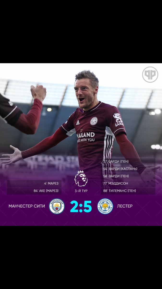 "Лестер" пробил три пенальти, Варди сделал хет-трик, а "Сити" получил разгром! 😱