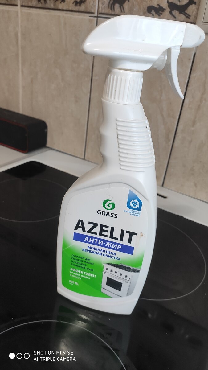 Я нанесла на самые загрязнённые участки на кухне (в основном это плита и фартук возле нее).