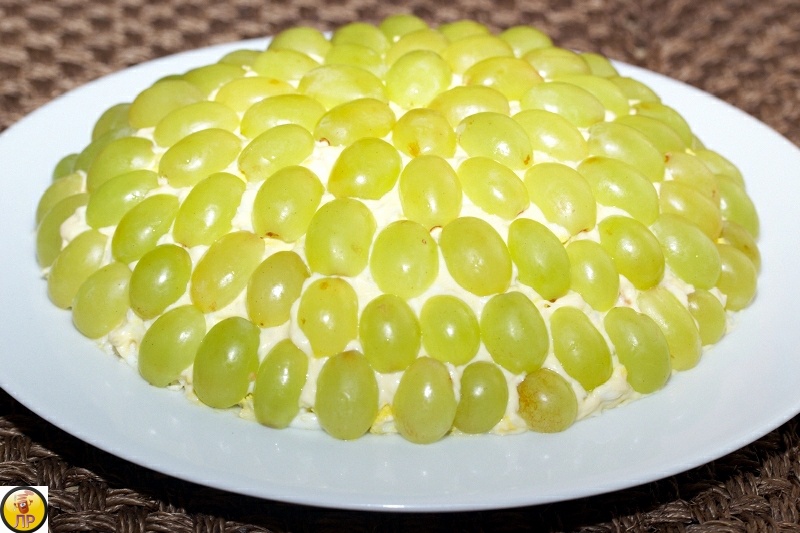 Приветствую дорогой читатель! На этот раз приготовим изысканный салат под названием "Тиффани" Выглядеть наше чудо будет следующим образом. Что нам понадобиться для приготовления: Перейдем к приготовлению Для начала нужно подготовить наши продукты, отварить яйца, курицу, орехи желательно обжаренные. Виноград лучше брать без косточек. Наше блюдо будет укладываться слоями и первым из них накладываем куриное филе нарезанное средними кусочками, где-то половину из того что есть, далее нарезанный лук, тоже половину и промазываем майонезом. Следующим слоем выкладываем немного измельченные орехи, тоже половину. Далее выкладываем сыр, заранее натертый и промазываем майонезом. Яйца нужно тоже натереть на терке или мелко порезать и выложить поверх сыра, затем повторяем все слои из оставшихся продуктов и верхний слой промазать майонезом. Ну и на последок разрезаем виноград пополам и выкладываем сверху. Подавать на стол лучше в охлажденном виде, такая закуска порадует глаз на любом мероприятии, а в