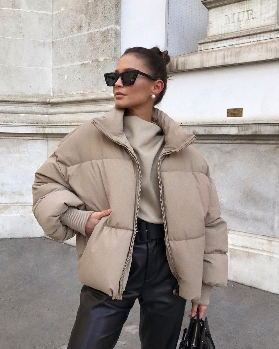Парку лучше брать без меха, спокойного оттенка. Модель не должна сильно прилегать и может быть достаточно свободной.