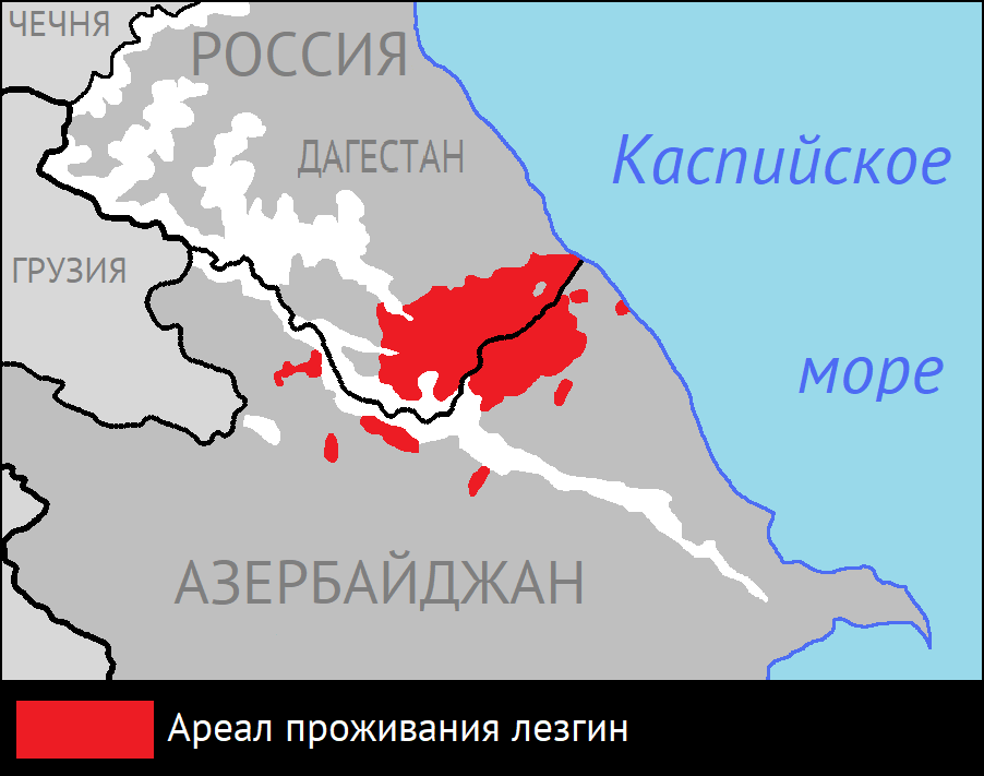 На юге они граничат по реке Самур и гребню Главного Кавказского хребта с Азербайджаном, на юго-западе – с Грузией. Часть лезгин, близкие к ним удины и шахдагская группа, в которую входят крызы, будуги, хиналуги размещены в Кубинском, Кусарском, Куткашинском и Конахкендском и других районах Азербайджана.