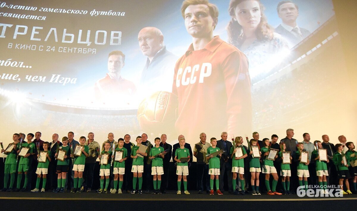Первыми оценить фильм о русском Пеле в кинотеатр имени М.Калинина пригласили ветеранов гомельского футбола и воспитанников СДЮШОР-8. За час до начала сеанса каждый на спортивном празднике нашёл себе занятие по душе. Взрослых было не оторвать от выставки, где экспонировались архивные фотографии, вырезки из старых газет, афиши, справочная литература и спортивные трофеи. Ребята тем временем прямо в фойе кинозала демонстрировали, как умеют забивать. Да, пока не так, как Стрельцов, который уже в 19 стал олимпийским чемпионом.