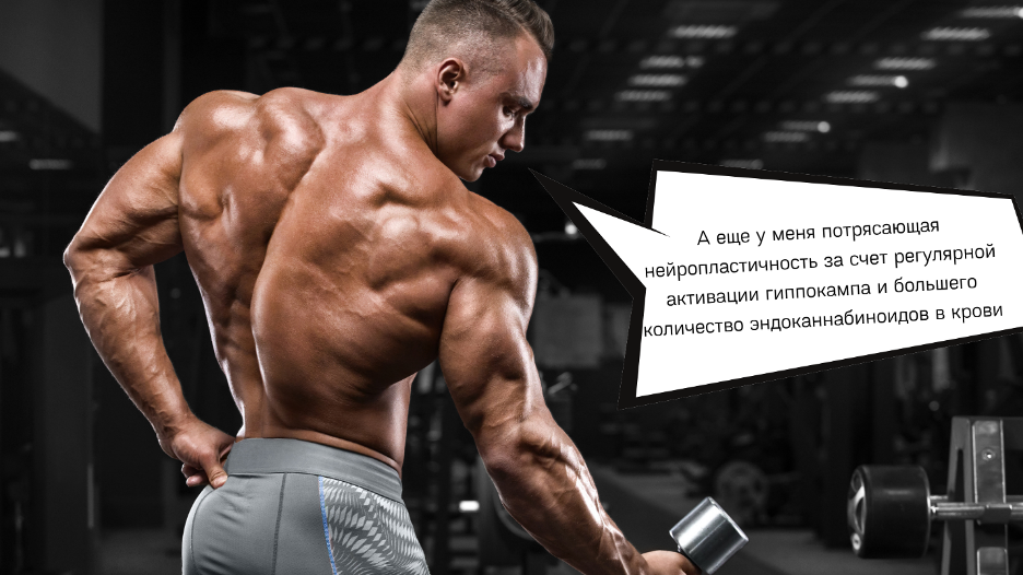 Вообще всем, кто более-менее регулярно тренируется, знакомо чувство эйфории после тренировки, физическое и духовное. Это чувство – результат действия эндоканнабиноидов – маленьких молекул, да, сходным по составу с каннабиноидами марихуаны и гашиша, только вырабатываемыми самим организмом. Эти молекулы циркулируют в крови и легко проходят в мозг, где, связываясь с определенными рецепторами, вызывают тот или иной клеточный эффект. В частности, эндоканнабиноиды могут воздействовать на гиппокамп – отдел мозга, принимающий самое активное участие в формировании воспоминаний и памяти.