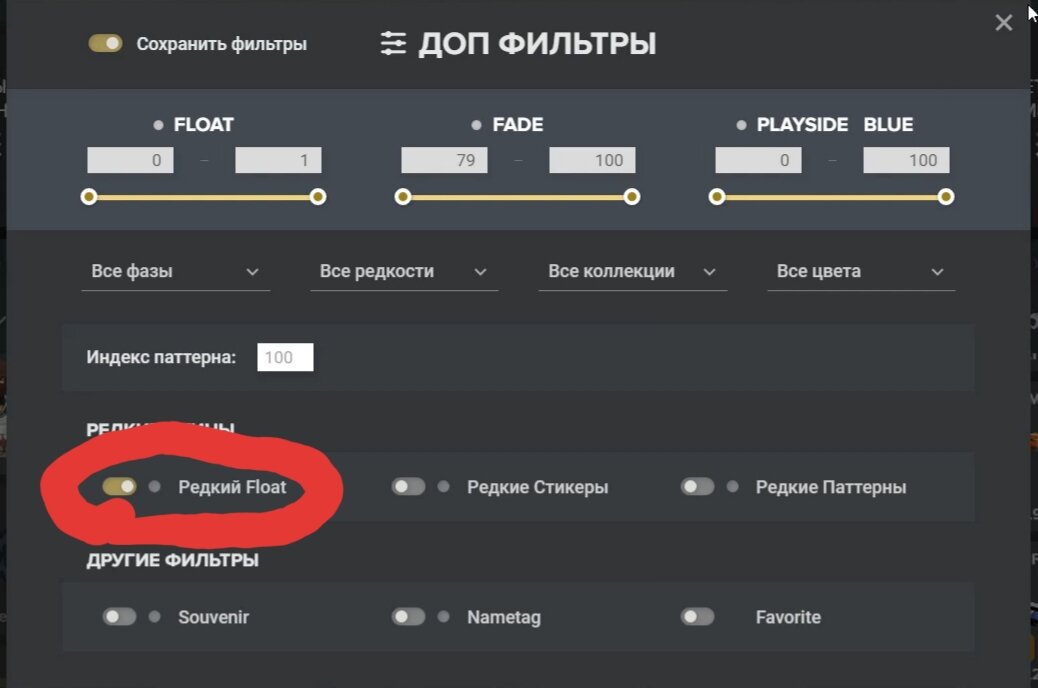 Для начала нам нужно зайти на CS.MONEY, затем в доп.фильтрах выбрать редкий