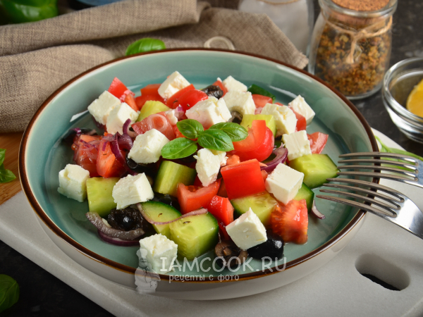 Немногие знают, что оригинальное название популярного салата - «Хориатики», что в переводе с греческого означает «очень простой» или «проще некуда». И действительно, справится кулинар с любым уровнем навыков. Если верить истории, салат появился в 1909 году, а его создатель - греческий эмигрант - был неравнодушен к маслинам, сыру, оливковому маслу и к свежим овощам. Из-за острой зубной боли, вернувшись на родину, он не смог порадовать себя любимыми продуктами. Поэтому пришлось их нарезать кусочками. Новое блюдо так понравилось самому изобретателю и его семье, что вскоре салат приобрел популярность не только внутри страны, но и по всему миру. В первоначальном варианте салата кусочки были достаточно крупными, в наши дни салат стал выглядеть более аккуратно - кусочки стали меньше. Иногда можно встретить версию с каперсами или анчоусами. Фетакса, которая часто выступает альтернативой сыру Фета, имеет несколько другую структуру - она более однородная, а по вкусу продукт напоминает сыр Филадельфия.Существует еще одна версия возникновения греческого салата с фетаксой - это блюдо придумали для туристов. Оно просто готовится, состоит из свежих овощей и сыра, вкусное и незамысловатое - как раз то, что нужно для летнего зноя. Дополнительным бонусом являлась его низкая себестоимость - ну какая таверна в 60-70 годы XX века могла упустить такую возможность?АЙМКУК